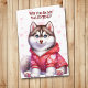 Cute Siberian husky-valpen i Sweater Valentine Helgkort