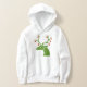 Den här mysiga hoodie är underbar för en kylig julmorgon. Den här designen har en enkel renhet av grönt, med röda prydnadsföremål hängande från kantler