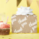 Späd presentfigursättning med snyggt elegant hand som gör att kalligrafi av den vita färgaden stil får Tack på en vanlig papper bas av sädesbrunkol.