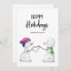 Ett enkelt och unikt julkort med ett illustration av ett par snögubbe skapar ett hjärta med grenar. Illustrerad och designad av Patricia Alvarez.