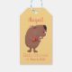 Cute singing capybara ukulele tecknad illustration presentetikett