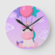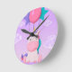 Cute Sitting Unicorn and Balloons Lilac Rund Klocka