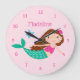 Cute-Sjöjungfru Personlig för visuell Rosa Stor Klocka