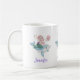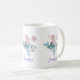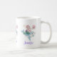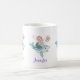 Ett mugg med en bra illustration. Designad med en söt sjöjungfru flicka som rider en lycklig delfin. En liten maneter-vän följer med dem. Dekorerad med små stänk av faux guld glitter.