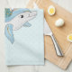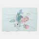 Kökshandduk med en bra illustration. Designad med en söt sjöjungfru flicka som rider en lycklig delfin. En liten maneter-vän följer med dem. Dekorerad med små stänk av faux guld glitter. Ljusblå bakgrund med blekt rosa polka dots.