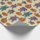 Den här Halloween-inslagningen är papper. Det visar på söta mjukisdjur med vissa av deras skelett som ser ut som en något skämtsam bild tillsammans med några penselpumpor. Det finns en fladdermus, en björn, en katt, en hund och en kanin. Djuren och pumporna är i skuggor av kol-grått, lila, teal och orange mot en speglad färgad.