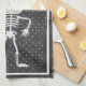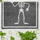 Lägg en roligt säsong i köket med den här Halloween-kökshandduken.. Skapat med en svart grinig prickad bakgrund, lite spöken och ett sött skelett som viftar hälsning. Om du vill redigera textbeskrivningen och gör det.
