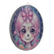This artwork features a playful and charming skull adorned with vibrant pink hair, accessorized by a cute bow. Surrounding the skull are an array of colorful flowers, adding a whimsical and cheerful touch to the design. The overall style is cartoon-like and lively, making it especially appealing to children and those who enjoy fun, girly aesthetics.