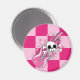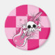 Cute skalle och korsben med bog och girguitar med rosa omgiven av hjärtan och stjärnor.