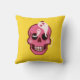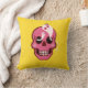 Cute skallkudde med en tecknad som illustrerar en rolig rosa skalle med rosiga kindben och två söta spökarna i ögats socketar som ser varandra och leker, en liten jubel spider som står ovanpå en av dessa skämtsamma vänner. Den här roligtens makabra design har en skarp psykedelisk, trippig rosa och gult färger.