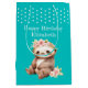 Lägg till en ljuvlig charm till din speciella gåva med den här anpassadet-presentväskan med en söt sluttning omgiven av rosa blommor! Perfekt för födelsedagar, babyduschar, eller bara för att den här turkosen och bruna väskan gör att du kan lägga till ditt eget budskap och namn både på framsidan och baksidan. Det är ett trevligt sätt att anpassa din present och få någon att le. Beställa din gåva i dag och ge en unik, slarvig tvist!
