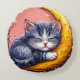 Cute sleeping cat resting on a crescent moon rund kudde