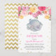 Cute Sleeping Elephant Rosa Blommigt Baby Shower Inbjudningar