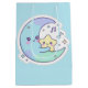 Celebrate special moments with this adorable "Baby Blue" gift bag featuring a peaceful sleeping moon and golden stars. Perfect for Ramadan gifts, Eid celebrations, baby showers, or nursery surprises. This high-quality glossy bag adds a touch of magic and serenity to your thoughtful presents. High-quality print with a calm aesthetic that suits any nursery or festive occasion.