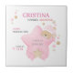 Nalle med sovande hatt sover på en rosa stjärna. Cute och mjuk flicka-födelsestatistik med stjärnor och prickar i rosa, beige och grädde. Anpassa genom att ändra texten eller anpassa den ytterligare för att lägga till din egen beröring.