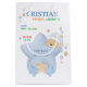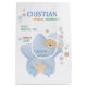 Nalle med sovande lock sover på en blå stjärna. Cute och färglös födelsestatistik i pojke med stjärnor och prickar i blått, beige och grädde. Anpassa genom att ändra texten eller anpassa den ytterligare för att lägga till din egen beröring.