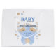 Nallar med sovkupor som sover på en blå stjärna. Tömningsduschdesignen i pojke, i form av en tuggdusch med stjärnor och punkter i blått, beige och grädde. Anpassa genom att ändra texten eller anpassa den ytterligare för att lägga till din egen beröring.