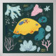 En illustration av en bläckfisk med inslag under vattnet. Bakgrunden kan anpassas till valfritt färg för att passa ditt tema!