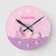 Cute Sleeping Unicorn Flicka Nursery Rosa Rund Klocka