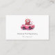 Business card with an adorable illustration. A happy looking sloth sitting in a sporty pink convertible. Waving as he drives by. With hearts floating upwards.