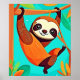 En söt tecknad som hänger glatt på en träd gren i en levande djungelscen. Perfekt för älskare och fläkt för tropisk konst (denna utformning gjord med hjälp av aviär influensa). Ställe beställer i dag och Kämpa på köpet!