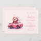 Cute Sloth in a Pink Convertible Birthday Inbjudningar