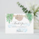 Tack till dem som närvarade vid din könsneutrala babydusch med det här söta Baby Sloth-tackkortet. Det är dekorerat med en vattenfärg av en söt baby-lutning hängande från gren, inramad med grönt djungelns löv och turkockmoln. Anpassa kortet med ditt namn och meddelande. Lämplig för en pojke eller flicka. Ursprunglig vattenfärg © Michele Davies.