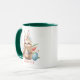 Cute Sloth Påskhare Rabbit Watercolor Eggs Personlig Namn Tea Kaffe koppar har en söt vattenfärgsillustration av en sluttning med bunny öron, vår blommor och färgstarka Påskägg med personligen namn nedanför. Perfekt för gåvor och förmåner till familj och vänner till Påsk party och firande. Designad av Evco Helgdagars www.zazzle.com/store/evcoholidays
