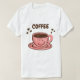 A fun and cozy t-shirt with a smiling coffee cup and little hearts.