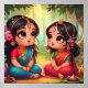 Cute Smiling Radha Rani med en bärbar dator i vänn Poster