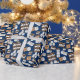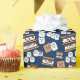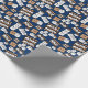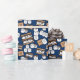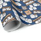 En roligt S'mres de temed presentwrap på blå bakgrund. Fylld med marshmallow och crackers. En roligt som campade mönster.