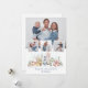 Julstugor, staket och träd i snö, som är mycket söta och gryga, täckta med mallar för tre små fyrkanter och ett stort bakgrundsfoto. Innehåller redigerbar fält och kompletterande grafik.