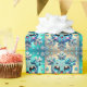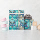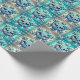 Snöflingor med blå och guld bakgrunder. Papper julomslutning.