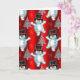 En vit och söt julkort med en massa lycklig, dans snögubbar. De omges av snö och söt, silver metallisk Julgranar. Bakom dem finns en levande röd bakgrund. Det här söta och färgstarka julkortet kommer säkert att ge ansikte ett leende till vem som än tar emot det.