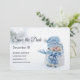 Spara datumkortet med ett sött foto med lite snögubbe. Stå utanför vintern med snö som ramlar runt. Den här söta lilla killen är klädd i blå stickade kläder. En vit/grått-bågflagga i bakgrunden.