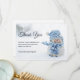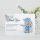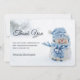 Tack för ditt kort med ett sött foto med lite snögubbe. Stå utanför vintern med snö som ramlar runt. Den här söta lilla killen är klädd i blå stickade kläder. En vit/grått-bågflagga i bakgrunden.