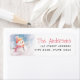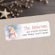Vinter-returetiketter med en illustration av ett sött snögubbe med hatt och ditt namn och adress med ett vismiskt teckensnitt.