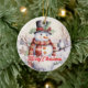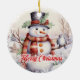 Cute snögubbe med fågel i snö julgransprydnad keramik
