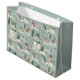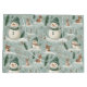 En söt festiv design med snögubbe och hjort på en scen i snö. Söt pasteller. Knäckväska för julklapp i grönten