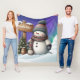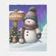 Cute snögubbe på Nordpolen med norra ljus Fleecefilt