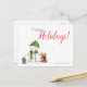 Cute-vykort med en illustration av snögubbe och djur. Om du kommer från din familj eller från ditt företag är vykort det bästa sättet att välkomna Julhelgen. Hela texten i det här vykortet är anpassade. Du kan anpassa ytterligare om du vill lägga till ett extra-meddelande längst bak eller om du vill ändra färg och typsnitt. Illustrerad och designad av Patricia Alvarez.