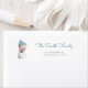 Adorable winter return address label with a snowman holding a little pig. Illustrated and designed by Patricia Alvarez.