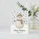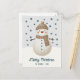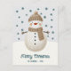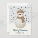 Cute Snowman Snowflakes Drawing Christmas Holiday Postcard. A cozy, Boho-inspired Christmas card featuring cute drawing of a snowman on a snowy hill. Soft earthy tones such as terracotta, cream, and green. Delicate snowflakes are scattered across the postcard, adding a touch of winter magic. The text 'Merry Christmas' is in elegant script. The overall aesthetic exudes a warm, rustic, and modern Bohemian feel, perfect for a stylish yet festive holiday look. Add your name and year.