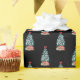 This festive wrapping paper features a cute, small Christmas pattern with pine trees covered in snow and colorful presents at the bottom. The black background color is customizable. Perfect for seasonal gift wrapping.