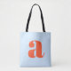 Cute Soft Blue Orange Monogram Retro Lettering Tygkasse