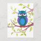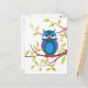 Cute sömnig uggla på tecknaden träd vykort