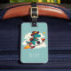 Backa upp för äventyr med den här fina bagagetaggen med en viskig dinosaur-sport, en klassisk cowboyhatt och en mysigt halsduk. Den här intrepiddinon är ingen vanlig roder - de spelar kosmos ombord på en flygande rymdraketer och håller sig kvar för det kära livet i en rodeo bland stjärnorna. Med fluffa moln och en stjärnnatt himlar som bakgrund är märkrn säker på att ge leende till medresenärer och få ditt bagage att stå på karusellen. Låt ditt unika stil och sinne för humor skina med personligens bagagemärke.