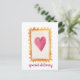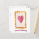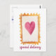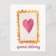 Det här söta Valentines day-vykortet innehåller en illustration av en vattenfärg frimärke med ett hjärta inuti. Nedan finns texten "speciell leverans". På andra sidan av vykortet står det "Alla hjärtans dag" och det finns söt vattenfärgshjärtan som flyter i himlar.