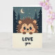 This greeting card shows a sweet little hedgehog peeking over a creamy white banner with a gentle smile. Its big shiny black eyes, tiny lashes, and light pink blush on its cheeks make it look shy and caring. Behind it is a night sky in deep teal and midnight blue, with a small crescent moon and scattered stars glowing above. Dark green evergreen trees stand on both sides, giving the scene a quiet, cozy forest feel. On the banner, the words “LOVE you” appear in dark lettering, with “LOVE” larger and “you” set slightly higher to the right. The simple picture and calm colors make it feel like a soft moment you’d want to share with someone close 🥰. It’s a meaningful choice for a partner, close friend, or anyone you want to remind that they matter ❤️.