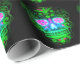 En färgstark söt coola-sockerskalle med rosa blomma ögon grönt hjärta Christian kor och mindre blommor, och en blå näsa. Firar Halloween, El día de los muertos (Day of the dead) eller All Saints'Day varje dag på året med denna glatt makabra bild. Vintagen återger söt coola färglös, vacker, giglistisk snyggt för konstnärlig elegant, mexikansk patri blommigt för modern designer mode designer.